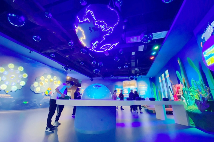 在這里,您可進(jìn)行游戲互動(dòng)體驗(yàn)、觀影體驗(yàn)、海藻科學(xué)魔術(shù)、康養(yǎng)設(shè)備體驗(yàn)、海藻美膚體驗(yàn)等等,沉浸式感受海洋現(xiàn)代科技,領(lǐng)略海藻神奇應(yīng)用。