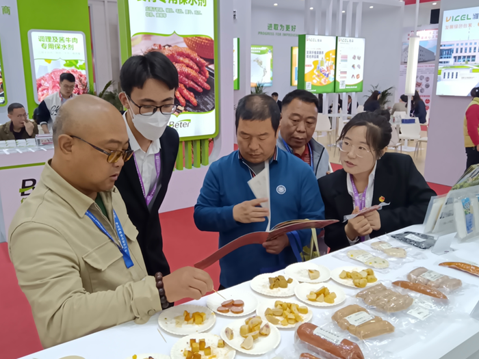 同時,研發(fā)與營銷工作人員熱情接待前來品嘗交流的行業(yè)客戶,詳細(xì)介紹海藻膳纖功能配料其應(yīng)用原理及賦能肉制品的各種可能。