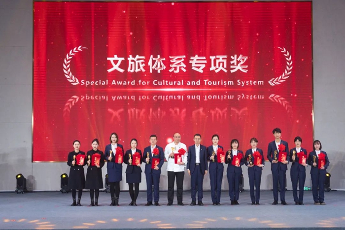 集團(tuán)黨委副書記、文旅集團(tuán)副總裁李可昌為獲獎?wù)叽眍C獎